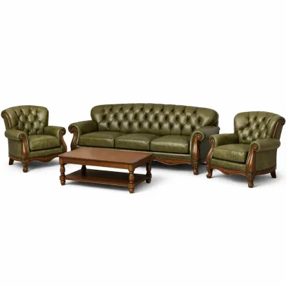 Set di divani con Divano Tre Posti e Poltrone in Pelle Eco Verde e Tavolino in Legno Massello